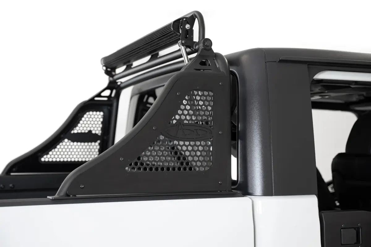 Provide a unique look to your Jeep Gladiator with the Race Series chase rack. Mounting options for a 40" light bar provides additional lighting for those off-road night adventures. Featuring our light actuator kit to raise and lower a front facing light bar so you can tuck it away when not in use. A sleek design on the Race Series chase rack makes your Gladiator stand out from the crowd. Laser cut aluminum panels reduce weight and allow for a precise fit. The Race Series chase rack is 100% bolt on, and Made in the USA.